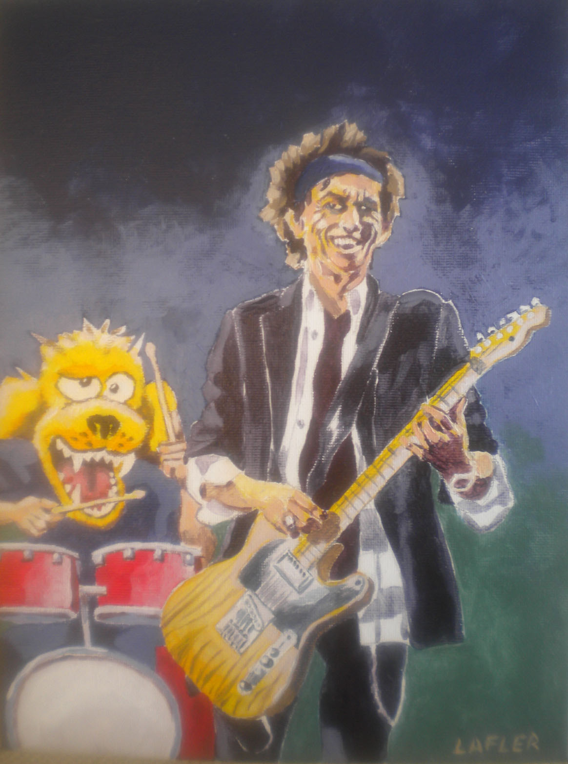 I was on a bit of a roll, so I executed a third painting of Dog Boy with Rolling Stones guitarist Keith Richards just for fun.
