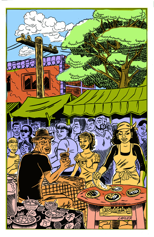 Join me for lunch at Alternative Comics HQ in Cupertino CA tomorrow, July 25th noon to one. I’ll bring art, Ts, stuff, and of course my new book Death in Oaxaca!