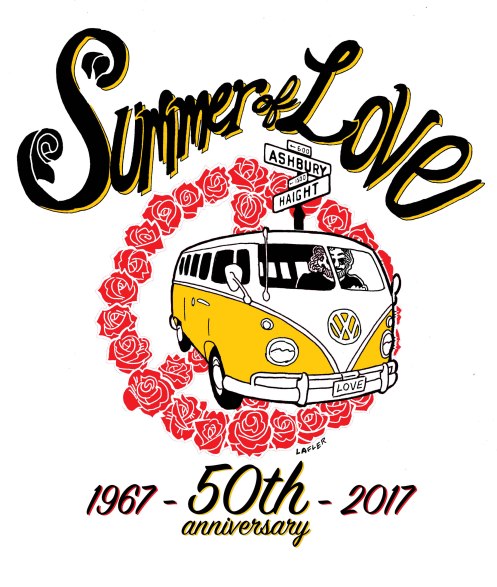 I’ve created a T-Shirt celebrating the 50th anniversary of the Summer of Love. Here’s the design: