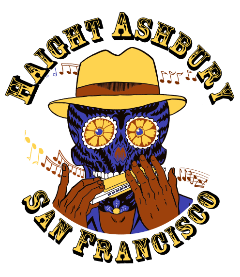 I took my sugar skull cover for my latest graphic novel Death Plays a Mean Harmonica and created one design to go with the book, and another for the San Francisco/Haight Ashbury tourist market (the store Haight Ashbury T-Shirts carries my designs).
