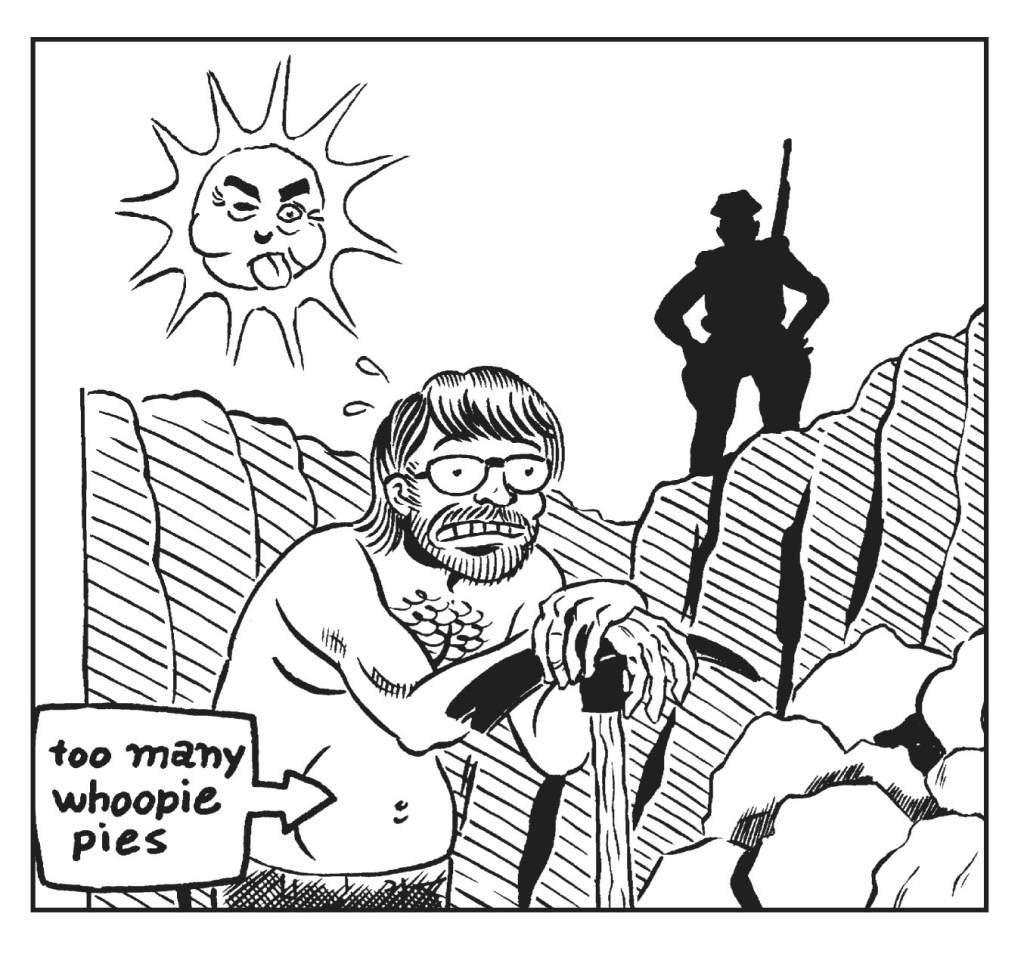 One bliss-like moment was collaborating with Steve Lafler on this book. Steve and I have been friends for over 30 years and he was never far from these stories, oftentimes even driving the getaway car. So having him as a copilot on this ride, adding his sympatico visual punch to the plotline, was perfect. It turns out this is why I washed dishes in a cowboy uniform.