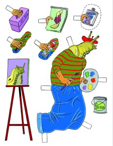 I created this iconic image of my cartoon character Jimmy Watts as the key promotional image for my Summer 2012 Bughouse Book tour. I’m touring the U.S. in support of Menage a Bughouse, a 408-page graphic novel collection.