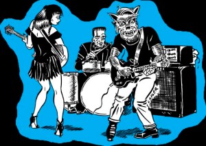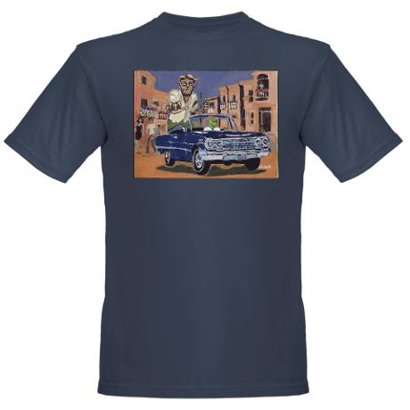 Be sure to visit my T-Shirt Shop at Cafe Press, for additional T Shirt styles including FrankenJerry and Rockabilly Wolfman! Not to mention the El Vocho women’s scoop neck T. Oh, and don’t rule out the BENB in a ’63 Chevy being stalked by a Giant Wolfman organic T-SHIRT!