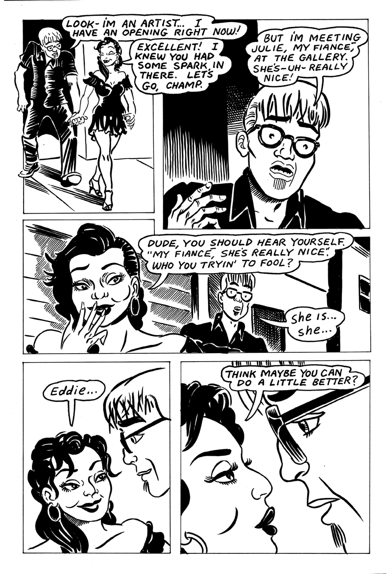 Here is an 8-page sequence from my Bughouse graphic novel. They are executed in brush & ink. Click on each page to see it larger. Indeed, click on it twice to see it REALLY BIG!