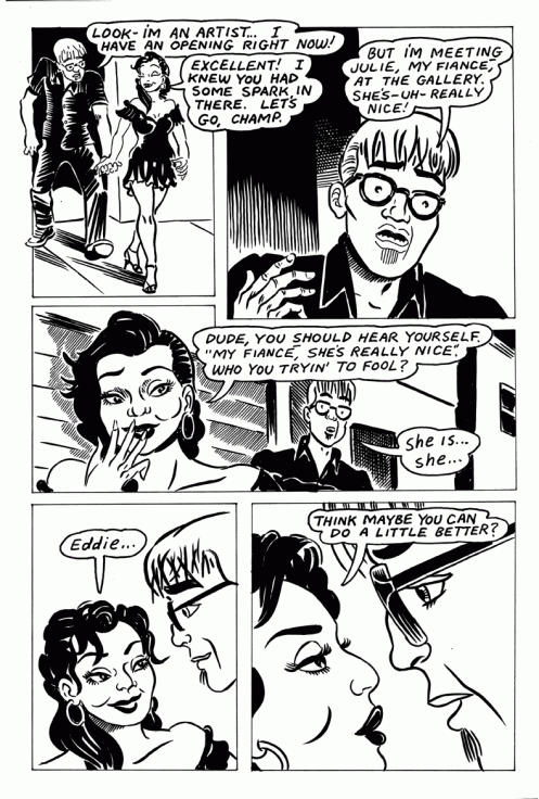 “Lafler wields a most appealing, cartoony style, half The Simpsons, half Peter Bagge’s Bradleys, and Beaupre is the lower-middle-class working-stiff spokesman par excellence. An awful lotta guys will identify.”